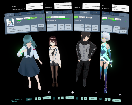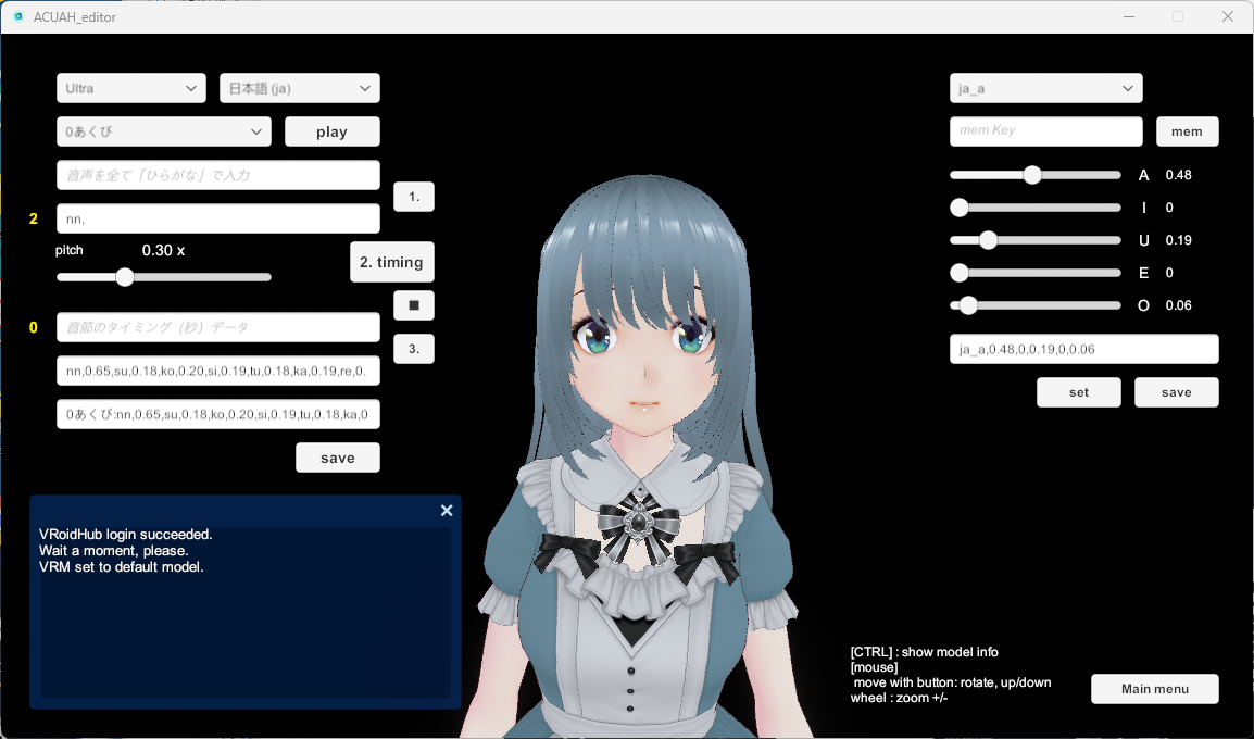 専用エディタ ACUAH editor (Windows, macOS対応。非商用は無料) で、対話シナリオ、音声データ、モーション等も自由に変更できます。